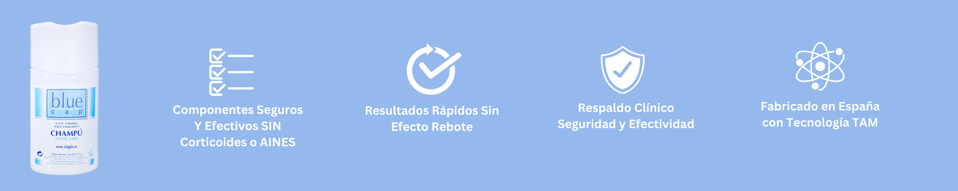 Lo más importante para nosotros es la seguridad, efectividad y calidad de los productos que manejamos. La suave, delicada y efectiva fórmula de Blue Cap Shampoo, esta compuesta principalmente por: