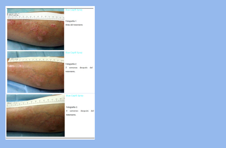 Descansa del ardor, dolor y picazón en zonas extensas y renueva tu piel de lesiones inducidas por seborrea, dermatitis, rosácea y psoriasis con Blue Cap Spray en pocas semanas.